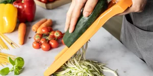 - Calabacín y tomates cherry — ricos en fibras, antioxidantes y vitaminas, apoyan la digestión y la vitalidad.