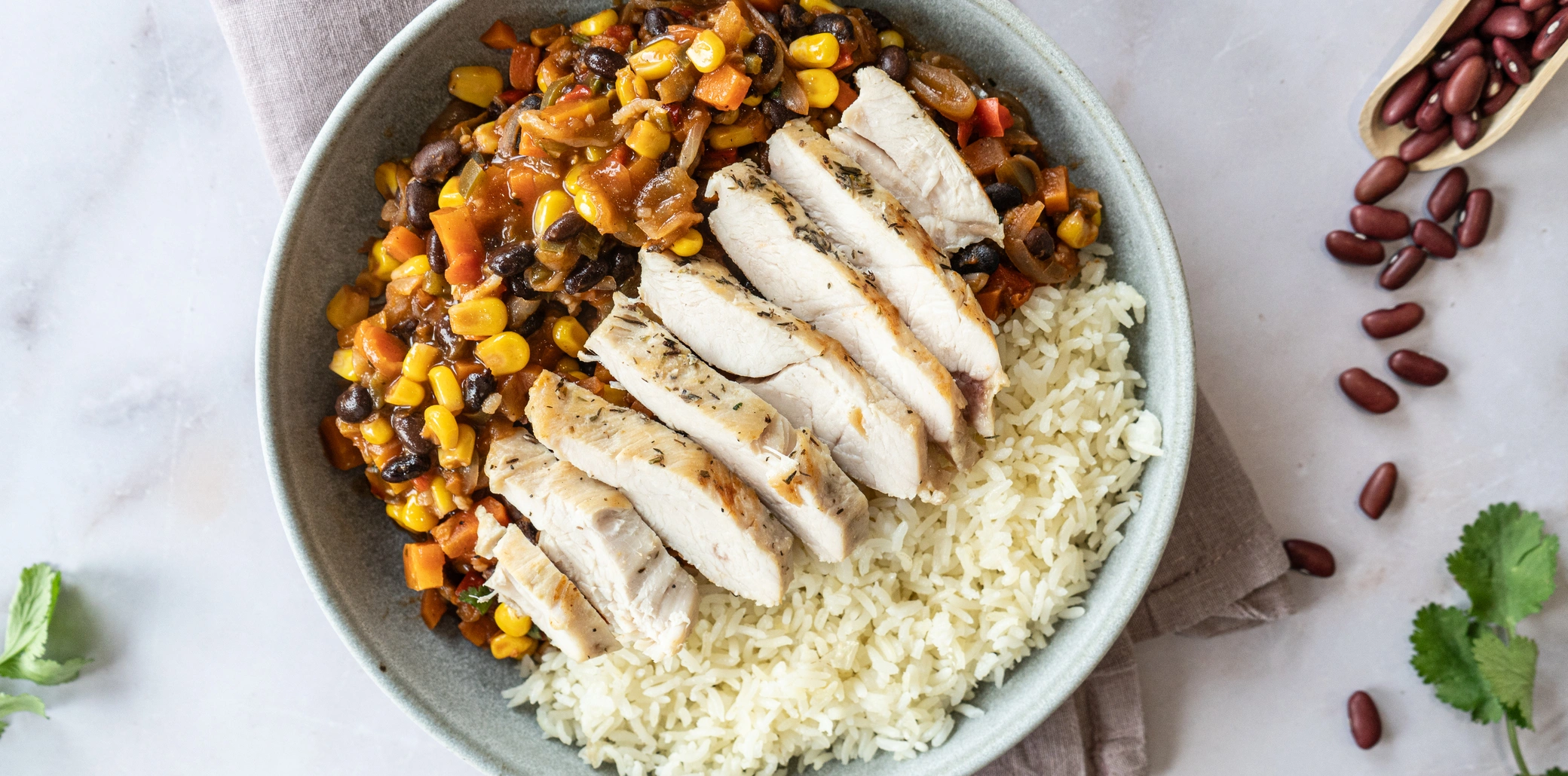 O Chili de Frango é uma versão mais leve e funcional do clássico chili, pensado para quem procura energia, saciedade e sabor sem excessos. Assim, combinamos peito de frango suculento, arroz basmati solto e legumes frescos que se unem num prato equilibrado e cheio de vitalidade. Além disso, o molho de tomate envolvente e as especiarias aromáticas dão intensidade e calor, tornando esta refeição perfeita para dias intensos em que precisa de potência natural e bem-estar.