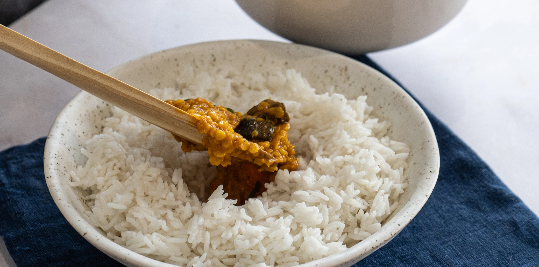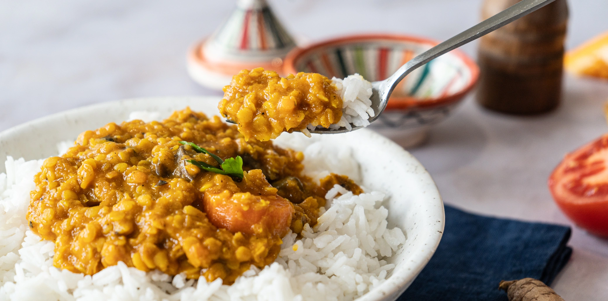 O Dahl de Lentilhas inspira-se na tradição indiana e oferece muito mais do que sabor. Este prato combina lentilhas ricas em fibra com arroz basmati leve e legumes frescos, criando uma refeição nutritiva, funcional e naturalmente reconfortante.
