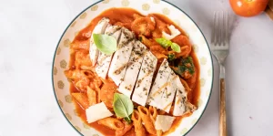 O Frango Pomodoro é a fusão perfeita entre tradição italiana e nutrição funcional. Preparado com peito de frango tenro, massa sem glúten e o nosso molho de tomate caseiro, assim, este prato combina sabor autêntico com um perfil nutricional pensado para quem exige mais do corpo e da mente.